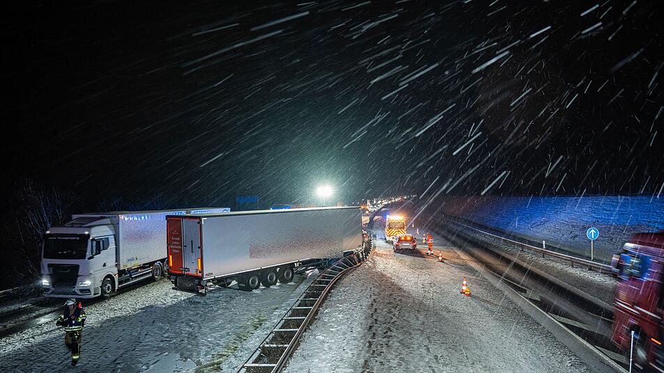 Mehrere Lastwagen sind auf einer ansteigenden Strecke der Autobahn 71 in Unterfranken im Schnee steckengeblieben. An dem Einsatzort bei Mellrichstadt (Landkreis Rhön-Grabfeld) stockte der Verkehr zeitweise, sagte ein Polizeisprecher. Einsatzkräfte seien am frühen Morgen vor Ort gewesen und hätten den Schnee geräumt. Dann konnten die Lastwagen demnach wieder weiter fahren. Verletzt wurde niemand.