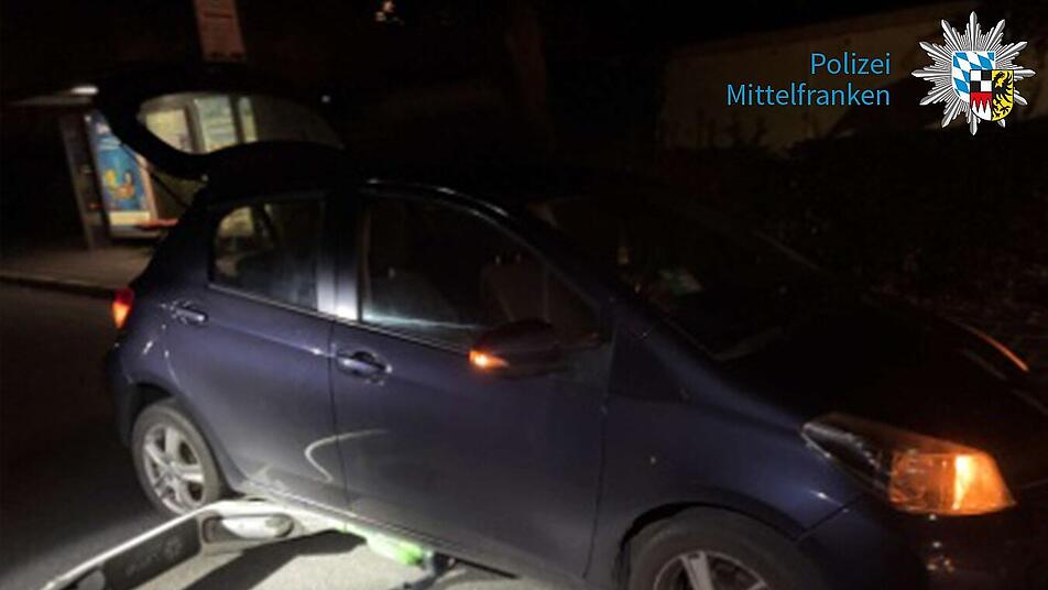 In Fürth am Finkenschlag kollidierte am Samstag (27. September 2025) gegen 21 Uhr ein Auto mit einem E-Scooter. Der Autofahrer erkannte den auf der Straße liegenden E-Scooter nicht rechtzeitig und fuhr darüber. Durch den Zusammenstoß wurde laut Polizei das Auto erheblich beschädigt. Der Scooter verkeilte sich so stark, dass er nur mithilfe der Feuerwehr unter dem Fahrzeug hervorgezogen werden konnte. So entstand am Auto ein erheblicher Sachschaden.
