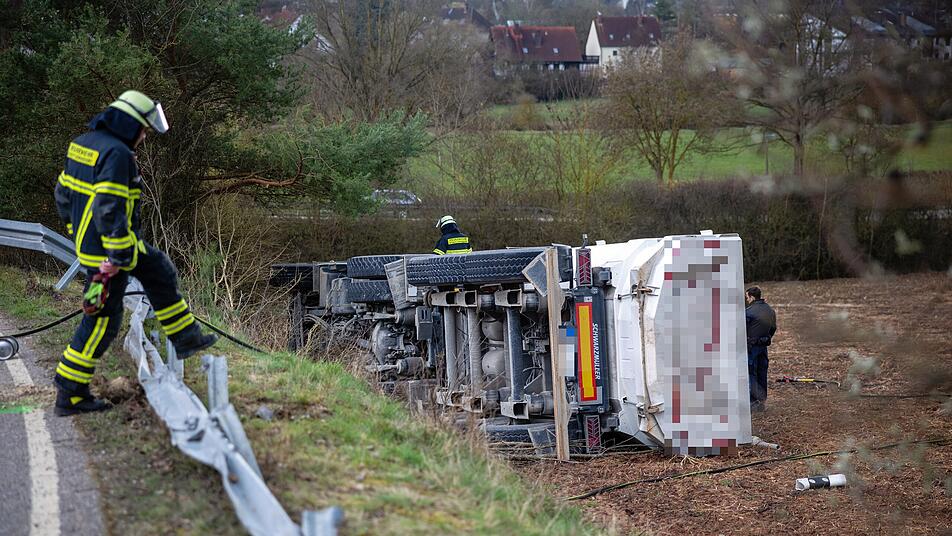 Zirndorf-Leichendorf: Lastwagen durchbricht Leitplanke und kippt um