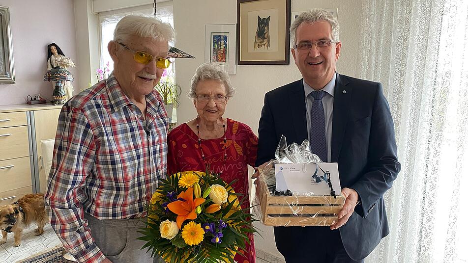 Erster Bürgermeister Kurt Krömer gratulierte zu diesem Jubiläum im Namen der Stadt Stein und überbrachte auch Glückwünsche von Landrat Matthias Dießl. "Wir wünschen Brigitte und Georg Abraham noch viele glückliche gemeinsame Jahre und dass sie sich den großen Respekt und die Liebe füreinander erhalten", so die Stadt Stein.