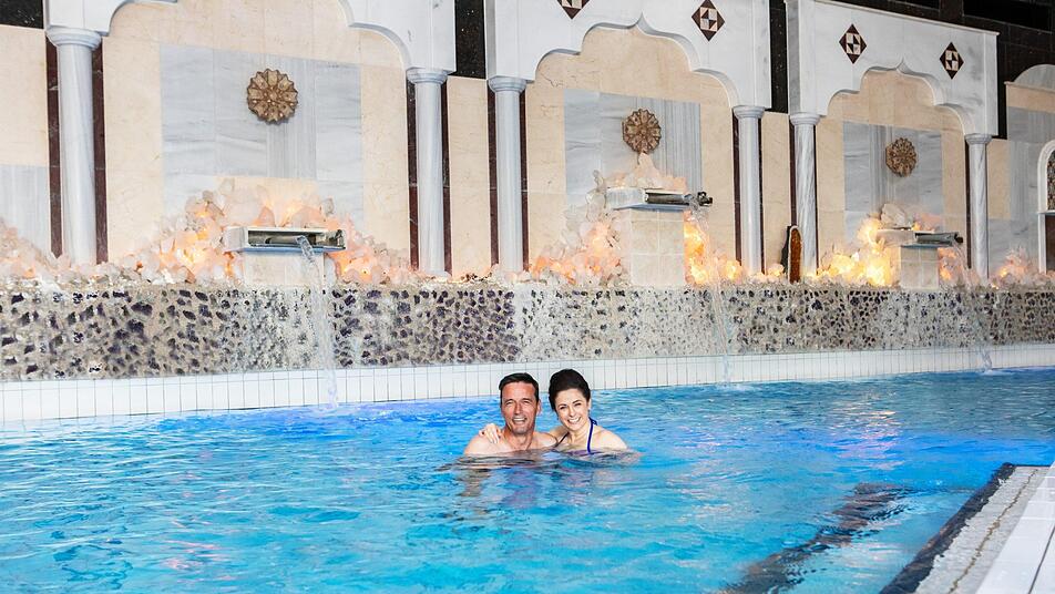 Das Thermalbad verfügt über drei Innenbecken und ein Außenbecken, die mit 33 bis 38 Grad warmem Wasser zum Entspannen einladen. So gibt es ein Bergkristall-Massagebecken, eine Rosenquarz-Heißwassergrotte und ein Lithium-Amethyst-Sprudelbecken, welches mit dem Mineralstoff Lithium aufgesalzen wird und so den Stressabbau fördert. Das Außenbecken ist unter dem Namen Pfarrer-Kneipp-Außenbecken zu finden und verspricht wohltuende Mineralien für Körper und Geist. Wassergymnastik wird mehrmals täglich im Bergkristallbecken oder bei schönem Wetter im Pfarrer-Kneipp-Außenbecken angeboten.