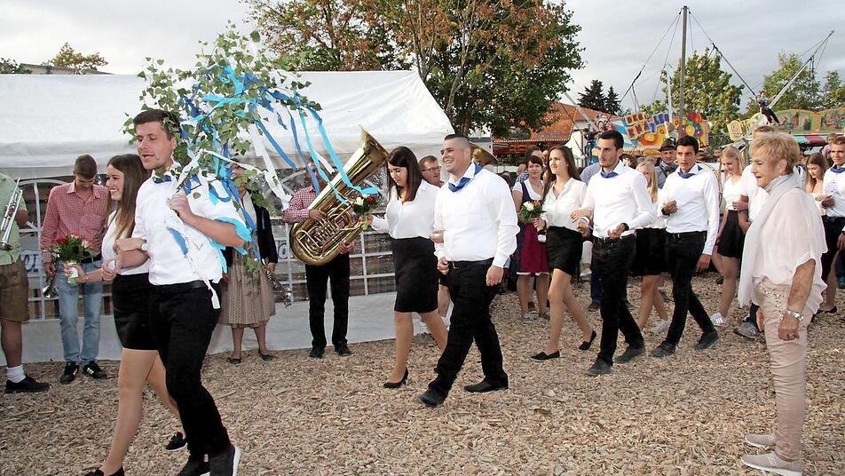 Das war ein neuer Rekord beim "Betz'n raustanzen" in Weisendorf, denn in diesem Jahr drehten 25 Paare ihre Runden um den Kerwa-Baum. Bei Helena Tontsch und ihrem Tanzpartner Jens Spranger klingelte schließlich nach 32 Minuten der von Susanne Vogel gehütete Wecker. Für das "Siegerpaar" gab es je einen Pokal, für Jens einen Bierkrug und für Helena ein Kaffeeservice. Mittendrin Gretl Trebisch, seit Jahren "die Mutter der Ortsburschen", sie reichte auch den geschmückten Birkenbuschen an das nächste Paar weiter.