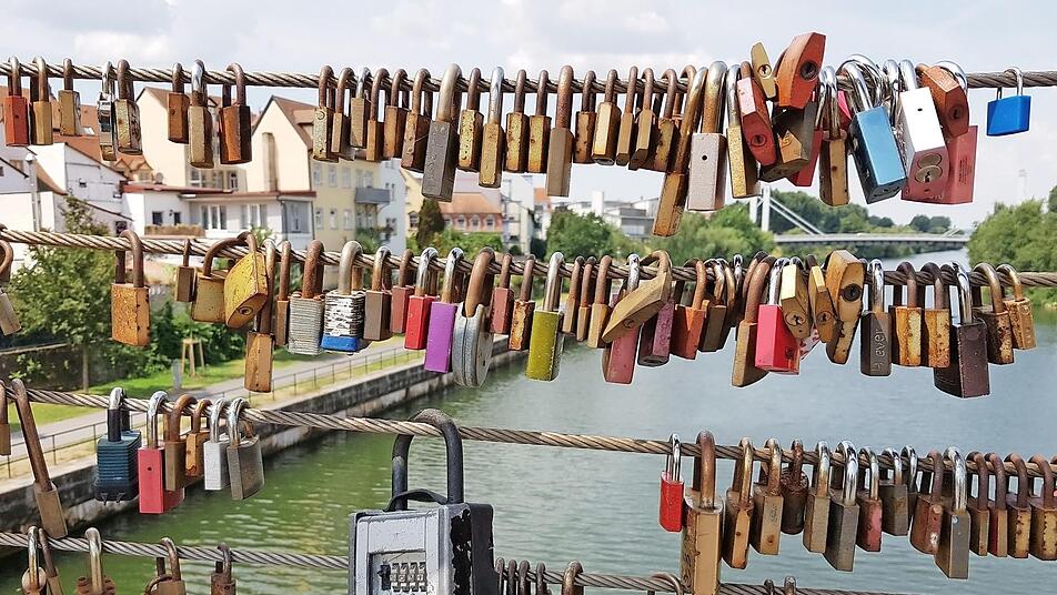 Was lehren uns die Liebesschlösser an der Kettenbrücke? Alte Liebe rostet doch! Der Zahn der Zeit nagt an den Aufhängungen. Aber er führt auch zu einer gewissen Festigung. Denn bei so einem durchgerosteten Schloss ist zwar der Lack ab, aber es lässt auch nicht mehr öffnen. Selbst wenn der Schlüssel noch auffindbar sein sollte. Scheidung nur mit dem Bolzenschneider möglich. Ein Pärchen blieb deshalb pragmatisch und griff gleich zum Zahlenschloss. Vielsagend auch ein anderes Zeugnis der Zweisamkeit: Zwischen Herzchen und Küsschen hängen Handschellen.