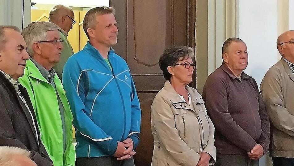 Es ist eine große körperliche Herausforderung, aber auch ein inneres Erlebnis für die Pilger aus der Pfarrei Neukenroth, die etwa 43 Kilometer lange Strecke zum Wallfahrtsort nach Marienweiher zu bewältigen. Zahlreiche Pilger nehmen diese Mühe gern immer wieder auf sich. Einige von ihnen wurden in Marienweiher jetzt für langjährige Teilnahme an der Wallfahrt ausgezeichnet (von links): Alois Wachter, Ottomar Fröba, Alexander Fröba, Helene Kalb, Rudi Kerscht und Hans Thoma. Foto: Gerd Fleischmann
