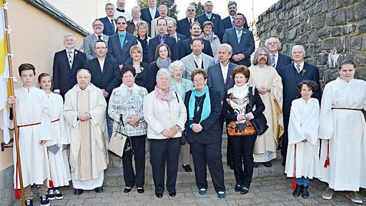 Die Jubelkommunikanten aus Rothenkirchen mit Pater Helmut Haagen, Generalvikar Monsignore Georg Kestel und dem Altardienst mit Zweitem Bürgermeister Arno Hoffmann Foto: Karl-Heinz Hofmann