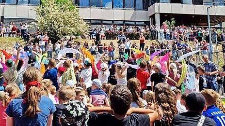 Die Klassen 1 und 2 präsentierten, begleitet durch Ukulelen, einen Tanz mit Tüchern aus dem Projekt WIM (Leitung Musikpädagogin Yvonne Reidelbach), und die Mittelschüler zeigten coole Moves vor dem begeisterten Publikum. Anschließend boten die Klassen ein eigenes Programm im Schulhaus sowie auf dem Sportplatz am Schulgelände, heißt es in einer Pressemitteilung der Schule.