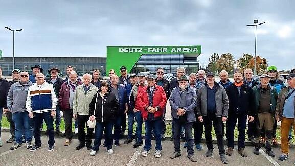 Nach der frühen Abfahrt um 5.15 Uhr im Reisebus gab es unterwegs bei Tagesanbruch eine Kaffee- und Frühstückspause mit verschiedenstem Gebäck. Nachdem die Gruppe rechtzeitig in der Deutz-Fahr- Arena ankam, blieb noch etwas Zeit, sich im Foyer des Besucherzentrums umzusehen und neue sowie klassische und auch besondere Deutz-Fahr-Schlepper anzuschauen.