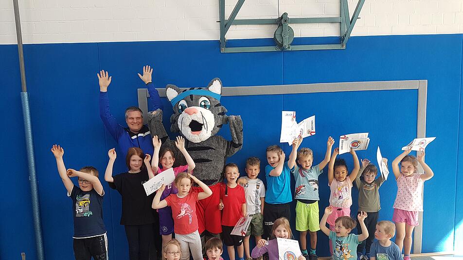 Große Augen machten die Kinder, als „Balatu“, das Maskottchen des Bayerischen Turnverbands, den fleißigen Kindern ihr Turnabzeichen überreichte.