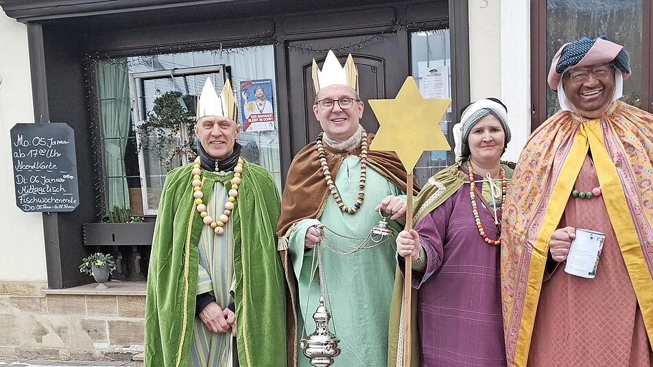 An Dreikönig waren auch in der Stadt Scheßlitz die Heiligen Drei Könige Kaspar, Melchior und Balthasar unterwegs, um Spenden für bedürftige Kinder weltweit zu sammeln. Unter den 15 Gruppen befand sich auch eine Erwachsenengruppe, bestehend aus Ali, Michael, Claudia und Jürgen. Sie wurden zur Verstärkung ausgesandt, weil der Sternsinger-Nachwuchs immer rarer wird. Während die Jungen traditionsgemäß den Segen in die Häuser brachten, gingen die etwas „wirtschaftlicher“ vor als die Jungen, sie klapperten hauptsächlich die Wirtschaften ab und erbaten bei kleineren Beträgen schon mal etwas mehr.