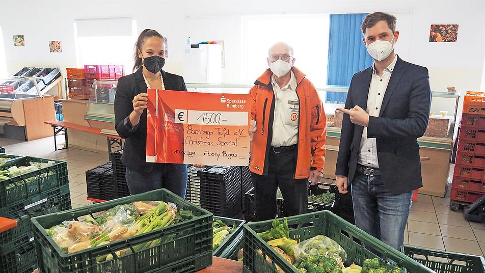 „Die Bamberger Bevölkerung unterstützt uns so toll, wir sind ja komplett ehrenamtlich“, sagt Dorsch . Kurz vor Weihnachten gab es nun zwei Mal Spenden-Besuch: Dritter Bürgermeister Wolfgang Metzner und Stephan Fiedler vom Aufseßhöflein übergaben einen Scheck über 2000 Euro . „Die Paare, die ich dort traue, können freiwillig 100 Euro an die Tafel spenden. Ich freue mich jedes Mal, dass sich wieder so viele beteiligt haben“, so Metzner. Der zweite Scheck kam von der Bambergerin Ebony Rogers. Sie hat 2020 ein ehrenamtliches Müllsammel-Projekt ins Leben gerufen, das sie zwischenzeitlich mit einer Spendenaktion für die Tafel verknüpft hat: Pro Kilo eingesammelten Mülls gehen 25 Cent auf das Spendenkonto. So kamen 750 Euro zusammen, die die Firma Weyermann – bei der Ebony Rogers angestellt ist – auf 1500 Euro verdoppelt hat. red