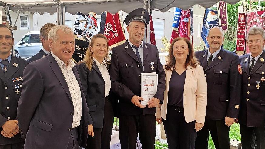 Ein Höhepunkt war die Ehrung von Michael Kundmüller. Er erhielt für 40 Jahre aktiven Dienst in der Feuerwehr Weiher eine Auszeichnung. Kreisbrandinspektor Andreas Schnapp, Kreisbrandmeister Florian Kügler sowie Bürgermeisterin Regina Wohlpart und Bruno Kellner würdigten Kundmüllers jahrzehntelange Treue und seinen vorbildlichen Einsatz. Außerdem ernannte der Feuerwehrverein Otto Karl, Reinhard Schmitt und Maria Reus zu Ehrenmitgliedern.