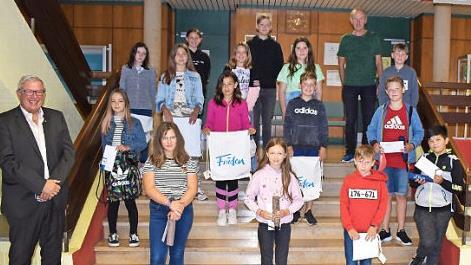 Fischer zeichnete die Albert-Blankertz-Grund- und Mittelschule für das beste Sammelergebnis im Schuljahr 2019/20 bei der Haus- und Straßensammlung bei den Grund- und Mittelschulen in Oberfranken mit dem ersten Platz sowie für hervorragendes Mitwirken am völkerverbindenden Dienst aus. Er überreichte Urkunde und die Medaille "Jugendarbeit" an den verantwortlichen Lehrer Thomas Micheel sowie kleine Präsente an die Sammler.
