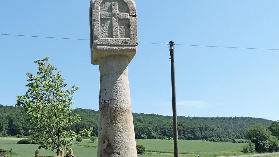 Die Einweihung bzw. Segnung des frisch restaurierten Bildstockes am Ortsrand von Wustviel in Richtung Untersteinbach findet am morgigen Donnerstag, 31. Mai (Fron-leichnam), im Rahmen eines Hochamtes mit anschließender Prozession um 10 Uhr statt. Die Gedenksäule, die jetzt wieder in neuem Glanz erstrahlt, entstand im Jahre 1610 und wurde von dem Restaurator Schiller aus Königsberg im Rahmen der Flurbereinigung und Dorferneuerung restauriert. Auch die Wustvieler Bürger und die Gemeinde Rauhenebrach haben sich an den Renovierungsarbeiten aktiv beteiligt, indem sie den Bildstock mit historischen Bodenplatten eingerahmt und mehrere Linden gepflanzt haben. Foto: Helmut Kistner