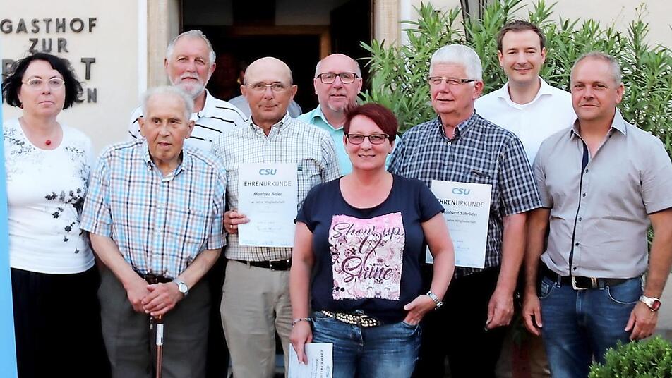 Der finanzielle Rechenschaftsbericht des Kassiers Alfred Albrecht fiel zum ersten Mal seit langem etwas negativ aus. "Für das Schlossgartenfest und die 60 Jahre CSU haben wir mehr Geld ausgegeben, als wir eingenommen haben." Kassenprüfer Bernhard Huber bescheinigte ihm auch im Namen seiner Vertreterin Helga Mönius eine einwandfreie Kassenführung und nach seinem Vorschlag wurden Vorstand und Kassier einstimmig entlastet.