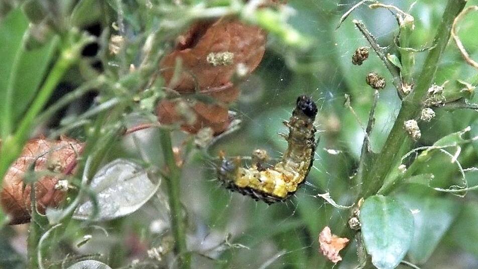 Das hat vor allem Dieter Kolb aus Höchstadt zu spüren bekommen. Erst vor einer Woche hat er von einem Tag auf den anderen entdeckt, dass sein großer Buchsbaum, den er schon seit Mitte der Achtziger sein Eigen nennt, vom Buchsbaumzünsler befallen wurde. "Das war natürlich erst mal ein Schock", erklärte Kolb. "Ich habe dann sofort angefangen, ihn mit Chemikalien gegen Schädlinge zu bekämpfen. Was man eben so im Haus hat", schilderte er weiter. "Das hat auch soweit ganz gut geklappt, nur fürchte ich, dass sich die Tiere bereits in den Stamm des Buchsbaums vorgefressen haben. Dann müsste ich ihn aufgeben und herausreißen."