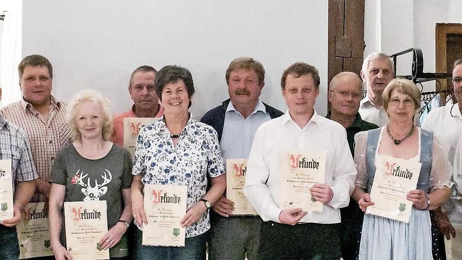 Für 30 Jahre: Helmut Betz, Harald Daug, Michael Daug, Peter Deusel, Herbert Grimmer, Lothar Hofmann, Anneliese Kraus, Christian Kraus, Marco Kraus, Werner Kraus, Mario Steigerwald und Klaus Vetter.