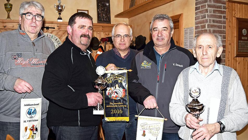 Bei der Jahreshauptversammlung wurden auch die Vereinsmeister ausgezeichnet. Es waren dies Gerhard Popp (Hühner), Vinzenz Dorsch (Tauben), beim Wassergeflügel und den Zwerghühnern Hans Schramm und in der Jugendklasse Michael Tempel (Zwerghühner) und Julian Wieslitzen (Tauben).