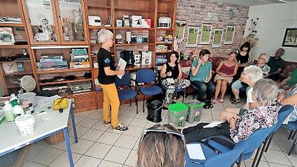Dabei werden organische Abfälle aller Art fermentiert statt zum Beispiel kompostiert. Sie zeigte auf, was dafür benötigt wird und worin die Vorteile liegen: Nahezu alle organischen Abfälle werden durch Mikroorganismen in einem geschlossenen Kreislauf zu hochwertigem Bodendünger umgewandelt. Ähnlich wie bei Sauerkraut entstünden Vitamine, Enzyme, Aminosäuren und Antioxidantien, versicherte sie.