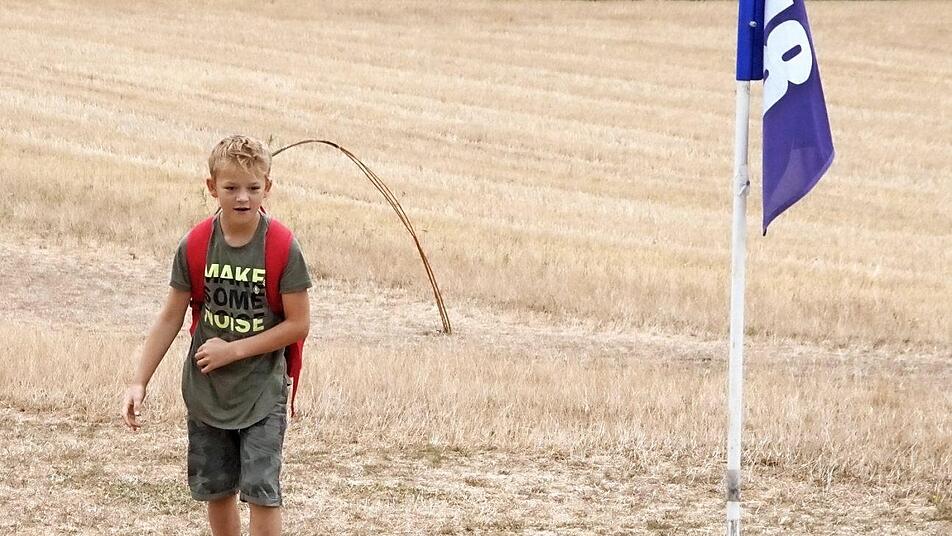 Auf anderen Stationen geben Jakob, Hannes, Leon und Franziska ihr Bestes, um den 18-teiligen Fußballgolf-Parcours mit möglichst wenigen Versuchen zu absolvieren. Da ist neben Ballgefühl auch räumliches Denken und Konzentration gefragt. Am Ende des Parcours mit einer Gesamtlänge von 1250 Metern wartet schließlich die "Staffelberg-Bahn". Das Zielloch liegt erhöht auf einem aufgebauten eingegrünten "Gipfel". "Tja, hoffentlich werden werden wir uns da nicht die Zähne ausbeißen", meint Leon zunächst ein wenig skeptisch - und schafft es am Ende doch, den Ball den kleinen Berg hochzuwuchten. Drin ist das Ding, der Gipfel ist erreicht. Strahlend klatscht er sich mit den anderen Kindern ab.Leider hat der Wettergott kein Einsehen. Doch der einsetzende Regen tut dem Vergnügen kaum Abbruch. Dass sie weiterspielten, zeigt erst recht, wie froh die Jungs und Mädels und auch die dieser Faszination erlegenen Erwachsenen sind, hier in der Region kickend zu golfen. dell