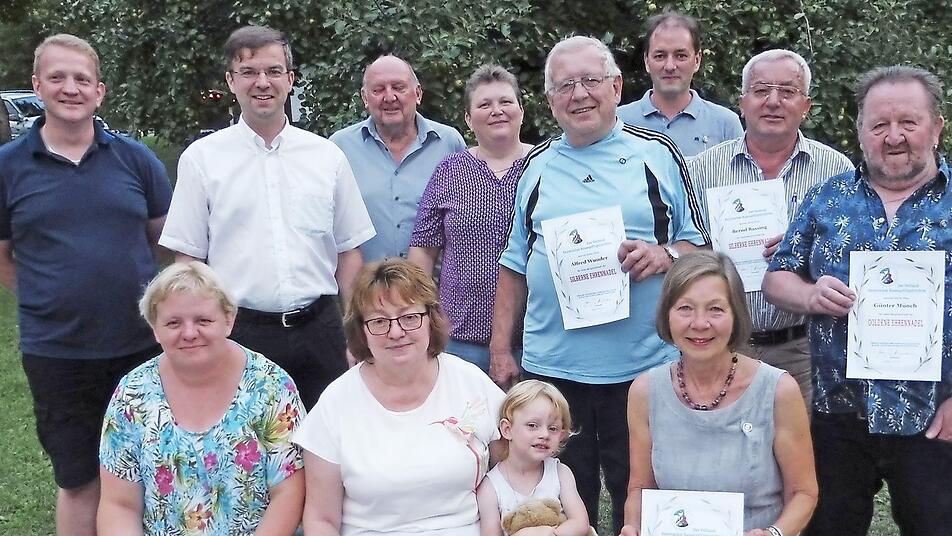 Für 60 Jahre Vereinszugehörigkeit wurden Franz Grosser, Reinhold Müller, Ehrenvorsitzender Günther Schmidt und Ehrenzuchtwart Erwin Winterstein geehrt. Für 50 Jahre Vereinstreue wurde Karlheinz Grosser ausgezeichnet, für 40 Jahre Ottmar Fischer, Gerald Grosser, Stefan Müller, Heinz Stadter und Günter Wich, für 25 Jahre: Bernd Bassing, Matthias Bassing, Michael Bassing und Heinz Gärtlein. dw