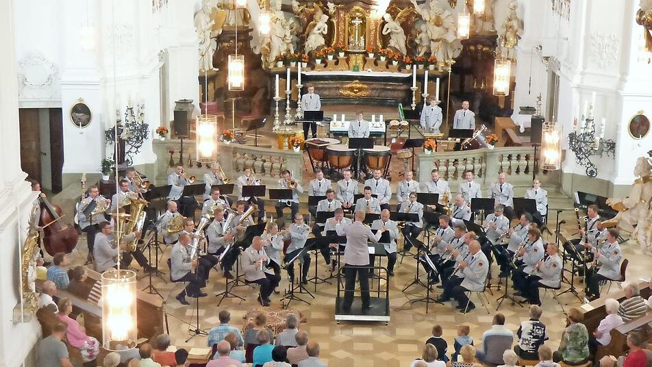 Unter dem Motto "Bläserpracht und Orgelglanz" gab das große Orchester des Heeresmusikkorps Veitshöchheim unter der Leitung von Oberstleutnant Roland Kahle vor rund 450 begeisterten Zuhörern in der Bas...