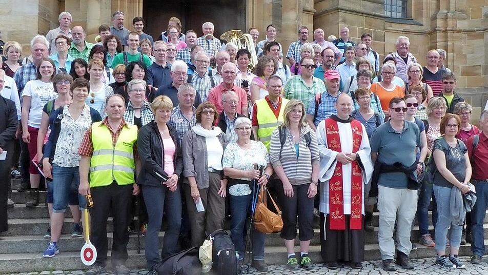 "Stell Dir vor, eben hat mein Sohn angerufen. Er ist aus dem Krankenhaus entlassen worden. Ich bin so froh", sagt eine Teilnehmerin. Nicht alles geht in Erfüllung, aber auch in schweren Stunden habe ihr das Gebet Trost und Halt gegeben. In Gößweinstein wurde die Wallfahrt von Pater Aurelian empfangen. Schäffner dankte allen Helfern, vom Absperrdienst über die Wallfahrtsbild-, Fahnen- und Lautsprecherträger und die Vorbeter bis zum Fotografen und der Blasmusik. Natürlich auch den Gastgebern in Buckendorf.