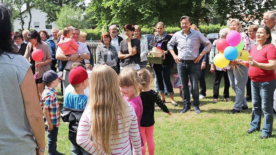 Auch Zweite Bürgermeisterin Jutta Köhler befand sich mit ihren zwei Enkelkindern unter den Tänzern. Der Bürgermeister konnte da noch nicht mithalten, aber er war begeistert von der Idee, dass Jung und Alt gemeinsam feiern. Sabine Köhler-Huter, die VdK-Vorsitzende, verteilte Luftballons an die Kinder und diese schenkten den Eltern gebastelte Glückskäfer, auf denen stand "Ich hab dich lieb" oder auch "Ich wünsche dir Gesundheit!".