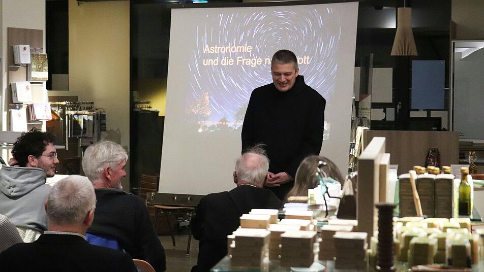 Kürzlich zog der Vortrag "Astronomie und die Frage nach Gott" von Pater Christoph Gerhard zahlreiche Zuhörerinnen und Zuhörer in die Klosterbuchhandlung "Buch und Kunst im Klosterhof" in Münsterschwarzach an. Diese und folgende Informationen stammen aus einer Pressemitteilung des Vier-Türme-Verlags.