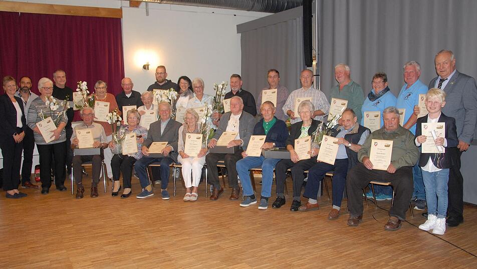 Noch länger war Karl-Heinz Ehrlich Vorstandsmitglied. Erst war er von 1983 bis 1998 Wanderwart, von 1998 bis 2010 Beisitzer, dann bis 2022 stellvertretender Vorsitzender. Heute bringt er sich noch als Beisitzer ein. Julia Hollenbacher ernannte Ehrlich für seine Verdienste zum Ehrenmitglied. Sie lobte, wie die beiden Granden den Jubelverein mit Herzblut geführt haben. Daneben zeichneten Julia Hollenbacher und ihr Stellvertreter Jochen Ehrlich weitere 35 Personen für jahrzehntelange Vereinstreue aus.