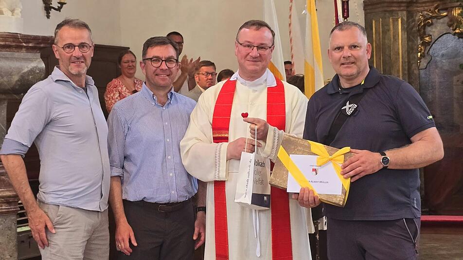 1. Bürgermeister Bäuerlein dankte Pfarrer Müller herzlich, dessen letzte Wallfahrt es war, da er nach 19 Jahren nach Kronach wechselt und künftig auch das Amt des Domkapitulars wahrnimmt. Unter Standing Ovations übergab er in der Kirche ein Abschiedsgeschenk der Volkacher. Am Abend fand die große Lichterprozession durch den Ort statt.