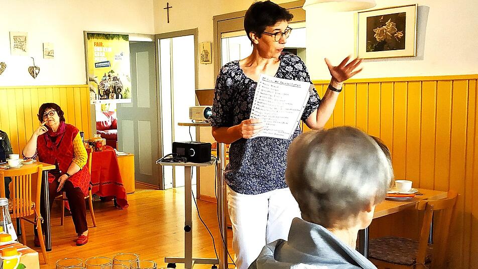 Zahlreiche Produkte aus dem Fairen Handel, die man zu Hause nicht unbedingt zum Frühstück konsumiert, konnten verkostet werden, wie zum Beispiel vegane Schokocreme, herzhafter Tomatenaufstrich oder auch die crunchige Erdnusscreme. Dazu gab es eine Teeauswahl, reichlich vom aromatischen Kitzinger Stadtkaffee und dem fruchtigen Orangensaft. Bei der Begrüßung der Kaffeegäste ging Jutta Heinrich als Sprecherin der Eine-Welt-Gruppe auf das Thema der Fairen Woche "Fair und kein Grad mehr!" ein und betonte, dass Klimagerechtigkeit nicht nur durch Emmissionseinsparungen, sondern auch durch faire Strukturen im Welthandel gefördert werden könne. Der Faire Handel, der würdige Arbeitsbedingungen schafft und einen gerechten Lohn bietet, der durch langfristige Handelsverträge, Beratung und Partnerschaft Investitionen in Umweltschutz, Gesundheitswesen und Schulbildung ermöglicht, ist ein gelungenes Beispiel dafür.