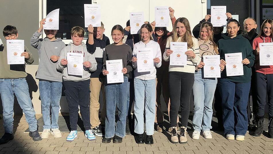Erreicht man 80 Prozent richtige Antworten beim Klassenspiel des landesweiten Wettbewerbs "Mathe im Advent", dann erhält diese Klasse eine Goldmedaille und kann an der vom Glück bestimmten Vergabe der attraktiven Preise des Klassenspiels teilnehmen. In diesem Jahr hat am FLSH Schloss Gaibach die Klasse 7b mit ihrem Klassenleiter Günther Janotta diese Hürde geschafft und wurde mit der entsprechenden Urkunde belohnt. Auch im Einzelspiel kann man Gold, Silber und Bronze erringen und so gelang es Albin Sieber und Linda Ress die Maximalzahl von 24 Punkten und damit die Goldmedaille im Einzelspiel zu bekommen. Diese berechtigte an der Auslosung der Einzelpreise teilzunehmen. Da die Anzahl mit 190.000 Teilnehmer*ìnnen riesig ist, war den Schüler*innen bei der Vergabe der Preise das Glück leider nicht hold. Aber wie so oft im Leben gilt der olympische Spruch "Dabei sein ist alles" als tröstende Einsicht. Außerdem hat der mathematische Wettbewerb hat allen Spaß gemacht und viele neue Erfahrungen gebracht.