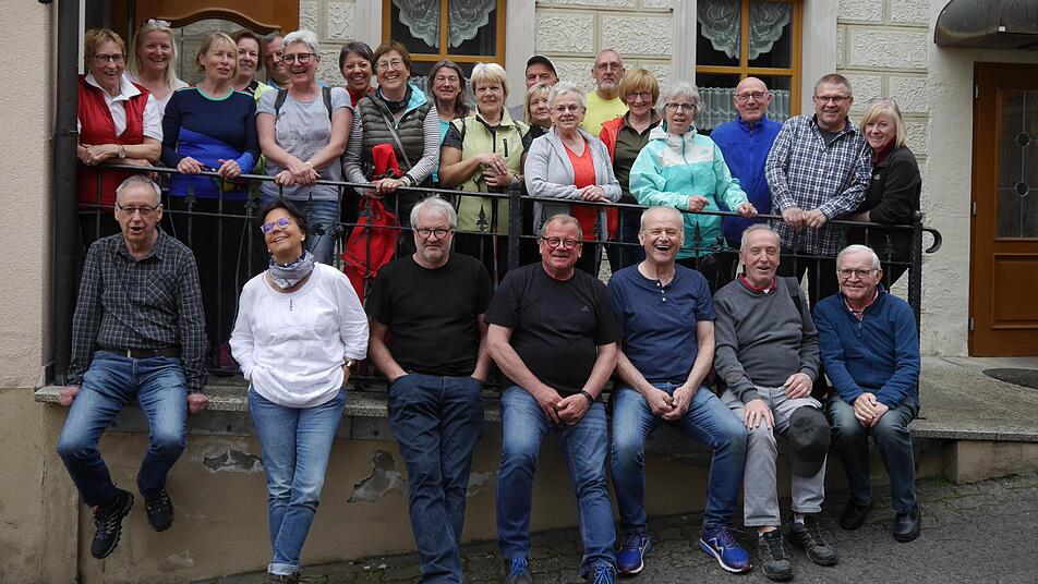 Weiter ging es über ansteigende Feldwege, Wiesen und Naturschutzbereiche Richtung Falsbrunn. Am höchsten Punkt hatten wir herrliche Blicke ins oberfränkische Land. Durch den langgezogenen Anstieg splittete sich unsere Gruppe auf. Die in Falsbrunn wartende erste Gruppe genoss im Biergarten bereits die Qualität des Theinheim Bieres.