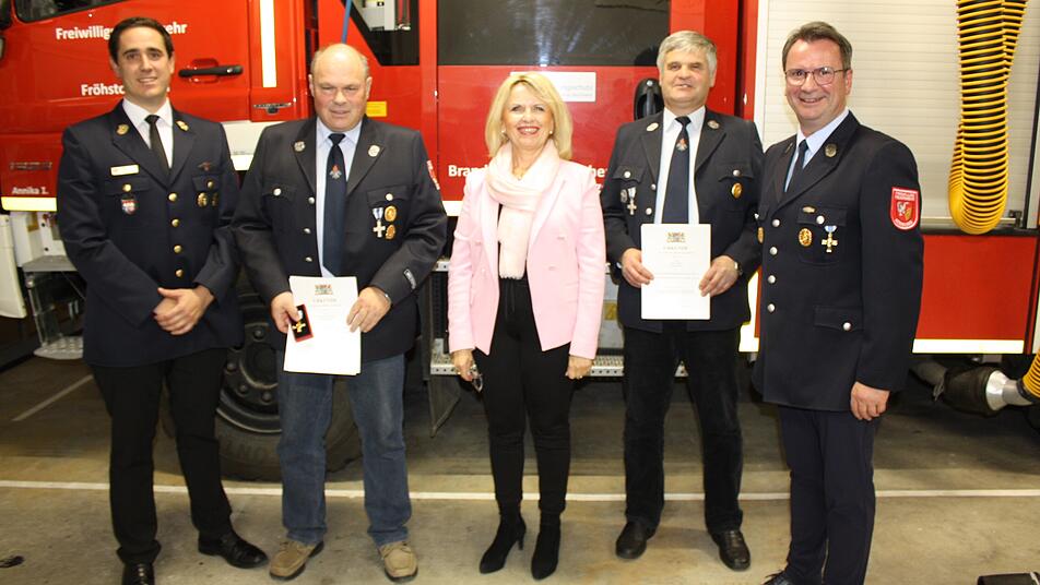Zusammenhalten - Besser Kommunizieren - Einigkeit - so soll es in der Aktiven Wehr und im Feuerwehrverein gut weiter gehen, betonte Bürgermeister Klein. Er bedankte sich bei den Feuerwehrdienstleistenden für ihre Einsatzbereitschaft. Er mahnte aber auch an, dass der Zusammenhalt wieder verstärkt werden müsse. Die Gemeinde wird auch weiterhin alles Notwendige aufwenden, um die Feuerwehren vor Ort gut auszustatten. Für 40 Jahre aktiven Dienst wurden Reiner Mahr und Friedrich Amberger geehrt. Landrätin Tamara Bischof nahm die Ehrungen vor und wies in ihrem späteren Grußwort auf die Bedeutung der Freiwilligen Feuerwehren gerade im Hinblick auf mögliche Katastrophenfälle hin. Bürgermeister Klein betonte die Notwendigkeit des Zusammenhalts; die Feuerwehren sind notwendige Sozialgemeinschaften, die einen Ort prägen. Hier ist kein Platz für Eitelkeiten, nur zusammen kann der Dienst am Nächsten gelingen. Dem schloss sich auch Kreisbrandinspektor Sebastian Muth in seinen Grußworten an.