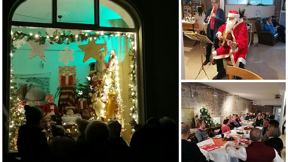 Gegen 17 Uhr gingen alle Personen nach draußen vor die ehemalige Bäckerei Rupp. Mitglieder von Kultur Marktbreit hatten das Fenster verhangen und dahinter weihnachtlich dekoriert. Mit dem Countdown der Zuschauer wurden die Vorhänge gelüftet und die Weihnachtsbeleuchtung eingeschaltet. Die Gäste zeigten mit einem Ah und Oh ihre Begeisterung. Die Augen der Kinder leuchteten vor Freude.