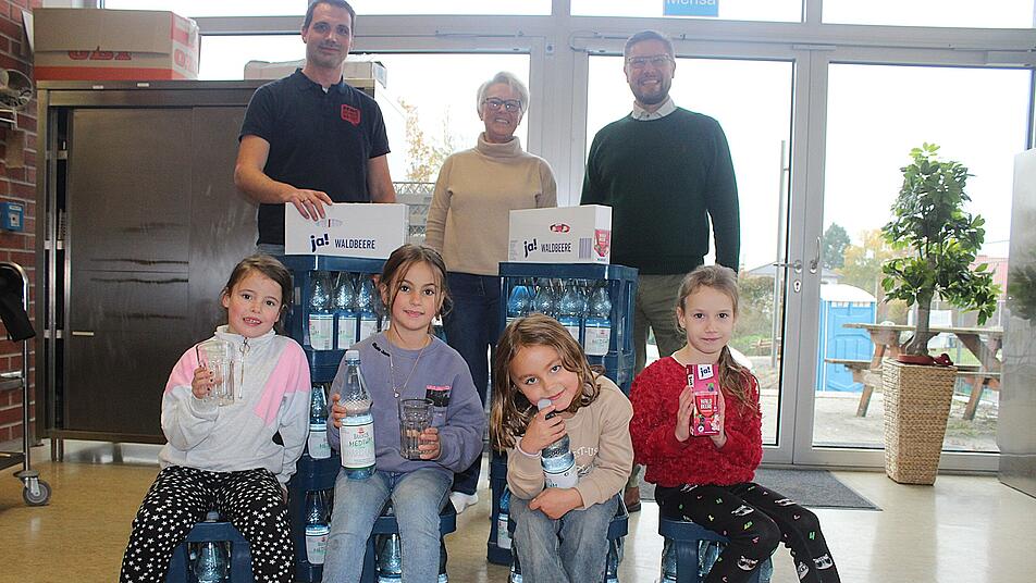 Für die Getränkespende bedankten sich von Seiten des Schulverbands Wiesentheids Bürgermeister Klaus Köhler und Verwaltungsleiter Christian Sturm. Es sei eine gute Sache, wenn die Produkte aus der Gegend kommen, so Sturm.