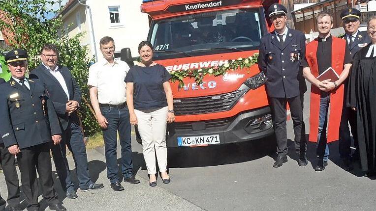 Die Feuerwehr Knellendorf hatte gleich dreifachen Grund zum Feiern . Zum einen stand die Segnung und Bestimmungsübergabe eines neuen Mittleren Löschfahrzeugs (MLF) an, zum anderen freuten sich alle über das generalsanierte Bürger- und Feuerwehrhauses sowie die Gründung einer Kinderfeuerwehr.