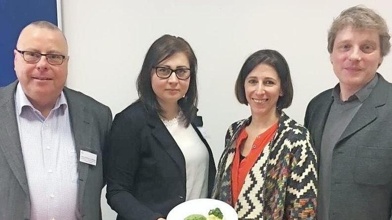 Dem Thema des Tages - "Ernährung im Alter" - entsprechend ging der fachliche Leiter der Ergotherapie der Prümmer-Klinik, Jochen Fromm, auf die Aspekte Schluckstörungen und Demenz ein und brachte sowohl wissenschaftlichen Grundlagen ein als auch passierte Kost aus Spaghetti Bolognese und Spargelcreme mit. Verwaltungsdirektorin Sabine Hein erklärte ergänzend die Funktion eines Pacojet, der zur Herstellung der passierten Kost in ihrem Krankenhaus verwendet wird und der es ermöglicht, die Lebensmittel so zu passieren, dass alle Nährstoffe enthalten bleiben.
