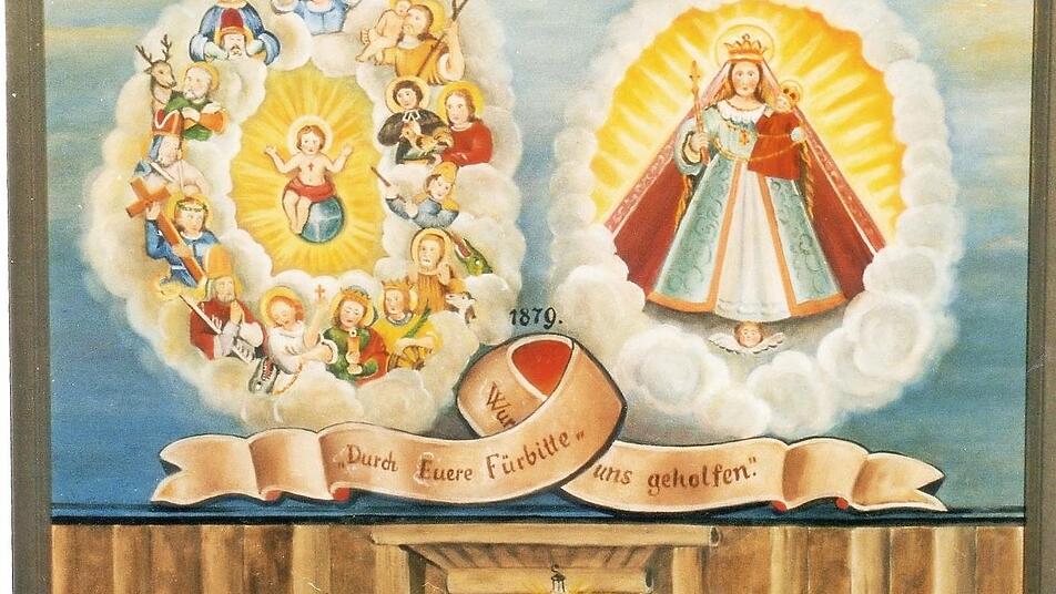 Damals konnten nach viertägiger Verschüttung im Berg zwölf bayerische und thüringische Bergleute am Ostermontag aus ihrem unterirdischen Verlies glücklich gerettet werden. Ende Mai 1879 lösten die Knappen ihr Versprechen an die 14 Nothelfer ein und pilgerten barfuß zum Gnadenort, um Gott für die Befreiung zu danken. Damals jubelten auf dem Weg zahlreiche Bewunderer den Stockheimer Bergleuten zu, die noch im gleichen Jahr eine aussagestarke Votivtafel für Vierzehnheiligen stifteten.