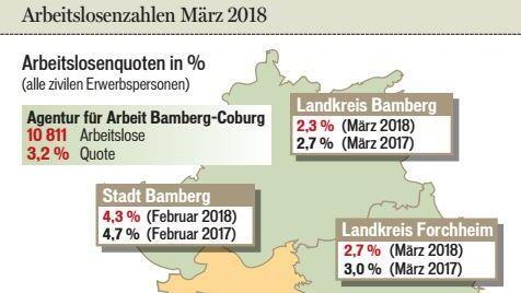 Im Landkreis Erlangen-Höchstadt sind Ende März 1566 Menschen arbeitslos gemeldet. Das sind 115 Personen oder 6,8 Prozent weniger als im Vormonat und 58 oder 3,6 Prozent weniger als vor einem Jahr.