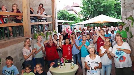 Das Problem ist bei vielen Sangesfreudigen jedoch immer der Text. Abhilfe brachte ein Beamer, der die entsprechenden Zeilen auf eine Großleinwand hinter der Bühne in der Scheune projizierte. "Da ist der Text dabei, da bin ich einfach textsicher", schwärmte eine singbegeisterte Besucherin.