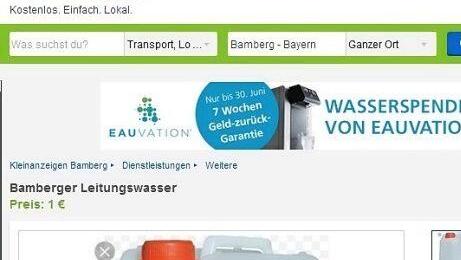 Sebastian Schanz Wer den Schaden hat, braucht für den Spott nicht zu sorgen. Ausgerechnet zur Kerwa ist das Trinkwasser in Hallstadt von Bakterien besiedelt. Und was tun die Bamberger Nachbarn? Amüsieren sich schadenfreudig. Bei E- Bay-Kleinanzeigen findet sich prompt das Angebot für "Sauberes Bamberger Trinkwasser. 1 Euro pro Liter im praktischen 5-Liter-Kanister abgefüllt." Eine echte Marktlücke.