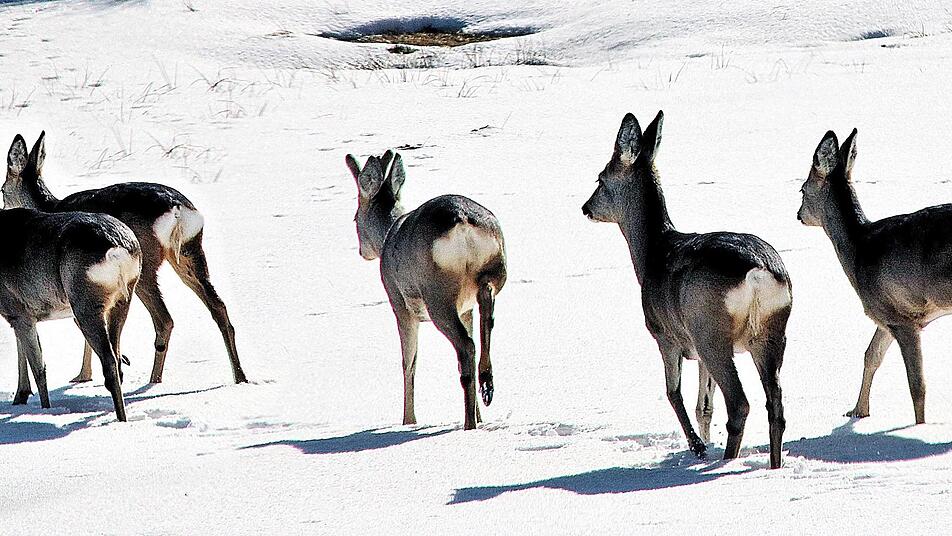 Auf der Suche nach Futter verlassen viele Rehe zurzeit auch tagsüber ihre sichere Deckung. Autofahrer müssen damit rechnen, dass die ansonsten so scheuen Ti...