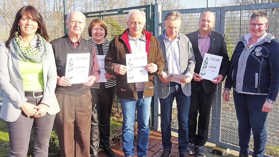 Folgende Mitglieder erhielten Ehrungen: 25 Jahre: Bianca Günther, Erika Jungkunz, Elisabeth Kreul und Ilse Stauch. 40 Jahre: Jutta Engelhardt, Rainer Engelhardt, Oliver Kraus, Marianne Krause, Jörg Roth, Hans-Josef Detsch. 50 Jahre: Kurt Bock, Jürgen Hannecke und Marliese Bär. 60 Jahre: Manfred Güntsch (Ehrennadel in Gold). gf