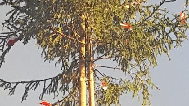 Ob es so einen Maibaum im Landkreis Haßberge noch ein zweites Mal gibt? Wohl kaum, denn dieses Exemplar mit seinem gegabelten Stamm dürfte einzigartig sein! Foto: H. Will