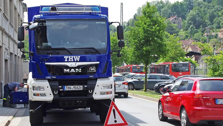 Das Technische Hilfswerk (THW) musste am Freitagmittag in die Güterstraße ausrücken. Dort waren etwa 80 000 Liter Wasser in eine Firmengarage eingedrungen. Das THW, mit etwa zehn Leuten und drei Fahrz...