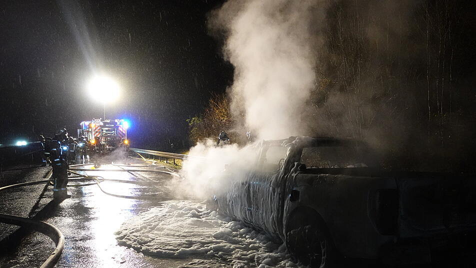 Flammen, Rauch und Vollsperrung: Am Sonntagabend ging ein Fahrzeug auf der A70 bei Haßfurt in Flammen auf.