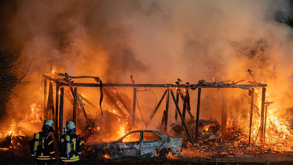 Scheune niedergebrannt - mehrere Fahrzeuge zerstört