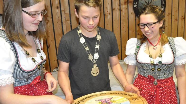Samuel Förster war die Freude anzusehen, als der Schützenmeister den 14-jährigen als neuen Jugendschützenkönig bekannt gab. Er erschoss sich die Königswürde mit einem 251-Teiler. Ihm zur Seite stehen im Jugendregiment Daniela Kern als 1. Ritter (394-Teiler) und Antonia Förster, die Schwester des Jugendkönigs, als 2. Ritter (416-Teiler). Antonia gewann auch mit 41 Ringen den Jugendpokal.