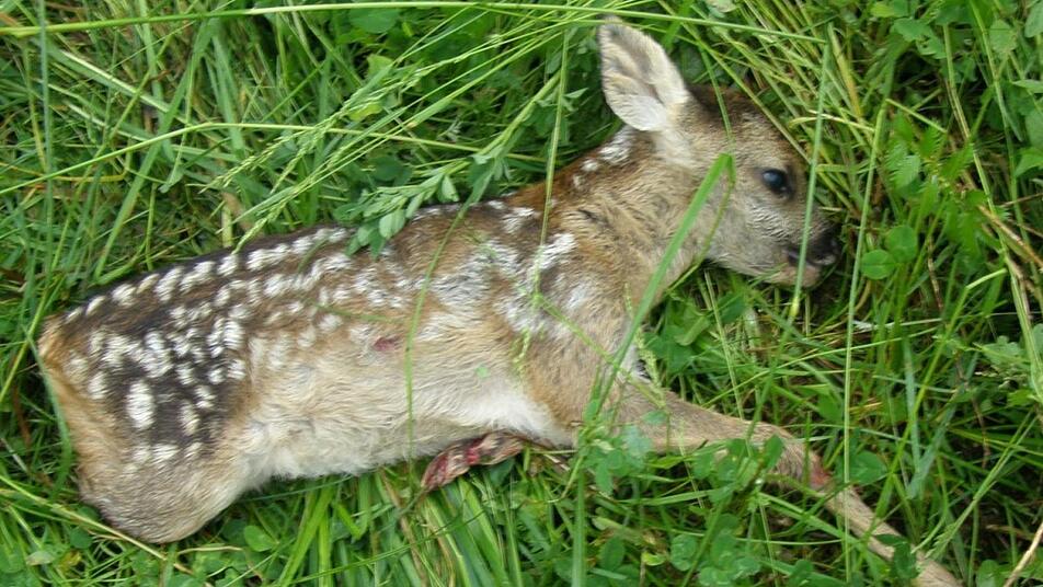 Allein 90 000 Rehkitze werden jährlich bei der ersten Grünland-Mahd verstümmelt oder getötet, ist in Publikationen des Bayerischen Jagdverbandes (BJV) zu lesen. Jungtiere laufen, anders als Alttiere, nicht weg, sondern drücken sich instinktiv in ihr Versteck zwischen den hohen Grashalmen. Doch der vermeintliche natürliche und instinktive Schutz ist trügerisch: Die Mähwerke der großen Arbeitsgeräte sparen die Verstecke nicht aus, fegen darüber hinweg und nehmen alles, was sich unter ihren Messern befindet, in ihre scharfen "Zähne." Auch die Fahrer dieser riesigen Mäher haben keine Chance, ein Rehkitz im hohen Gras zu erkennen, da die Geräte bis zu 14 Meter Breite an einem Stück mähen und teilweise mit einer Geschwindigkeit von bis zu 20 km/h gefahren werden.
